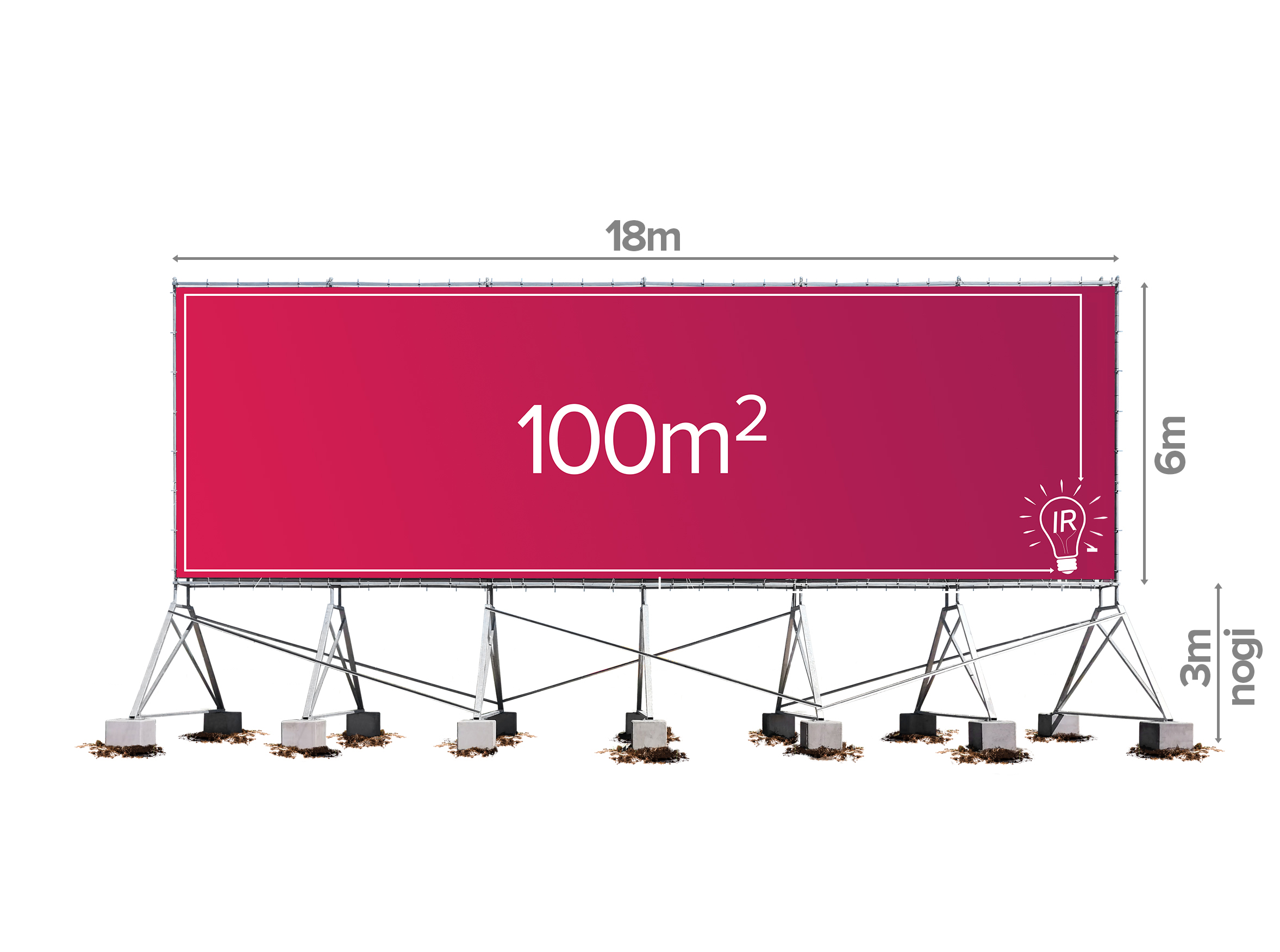 Konstrukcja reklamowa 18 × 6 m z nogami 330 cm (100 m2)